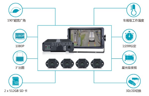• 支持4路高清摄像头输入,摄像头支持同屏分割显示;